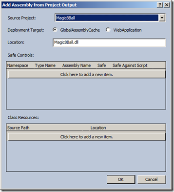 This will ensure that your Magic8Ball.dll is deployed as part of the solution. Click OK.