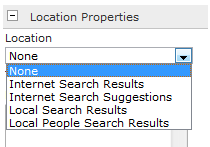 Let’s open the Web Part properties first. The very first section of properties is ‘Location’, This is used to tell the Service Application ‘where’ the search results web part has been used and what results data to use when processing the search. if this is set to none, then it’s using the Localised defaults from the SharePoint root on the file system.![]()