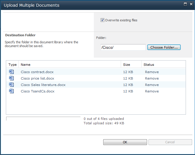 Excellent, Now we’ll do a multiple upload into the Cisco folder.