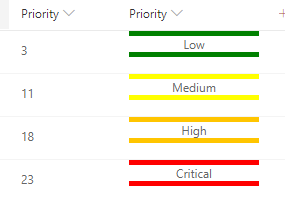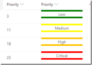 This number was used in the PowerBI reports which dictated the need for a numerical value even though the Project Managers were used to seeing the text of Low to Critical in their highlight reports. In order to make this easier for the PMs to consume in their project dashboards, the client wanted the numeric value replacing with a simple banner showing the priority, along with a coloured strip denoting the level.