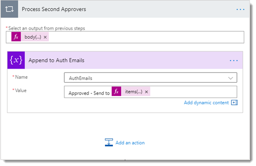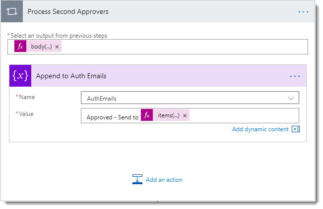This is then concatenated with the text “Approved – Send to “ to form the response object that we need.At this point, we know have everything that we need to trigger our first Approval process and wait for the outcome.