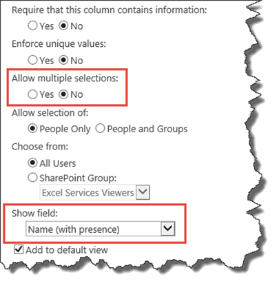 We can see the intended behaviours of the Person or Group field if we look at the settings provided when adding that particular field to a list.